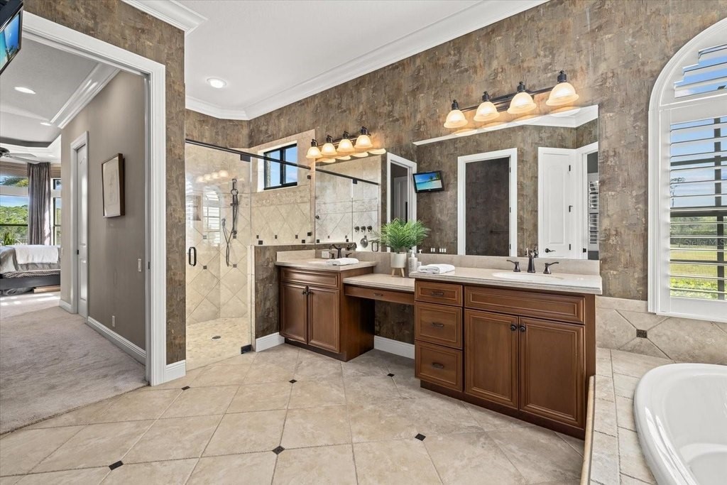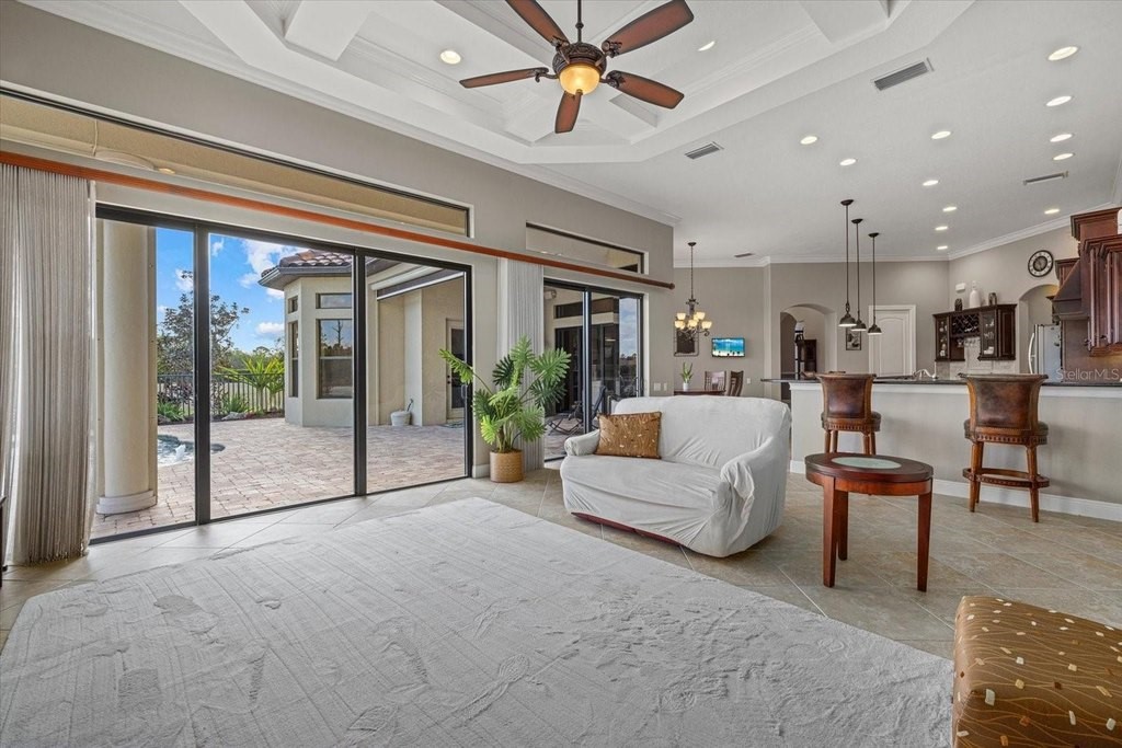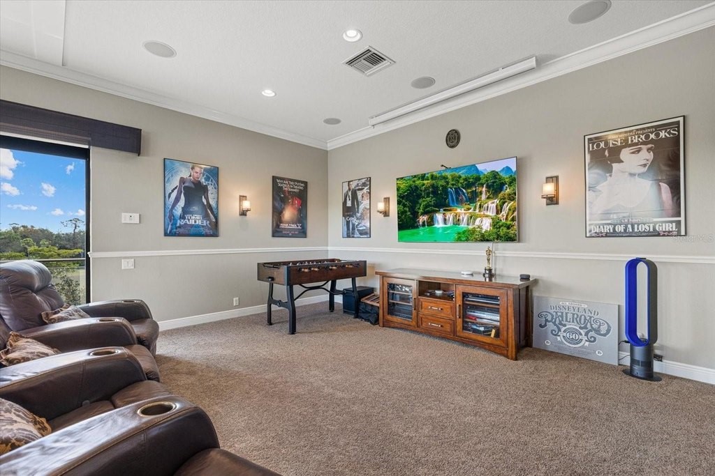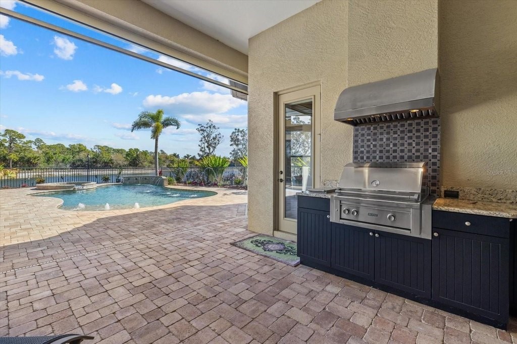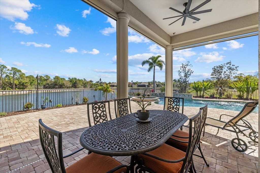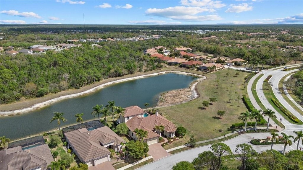 Welcome to one of the most exclusive, custom-built homes in Gran Paradiso. Situated within the Grandezza enclave and perfectly positioned on a premium corner waterfront lot with PRIVATE preserve and water views, this exceptional Gran Palazzo II model offers 104 feet of rear water frontage. Custom built by the highly sought after luxury builder, Sam Rogers, this residence is over 4,000 sq. ft. of refined living space designed for the most discerning buyer. Enjoy peace of mind for years to come with HURRICANE IMPACT WINDOWS and DOORS. From the moment you enter, the home impresses with a grand formal living room, soaring 12-foot ceilings, 8-foot interior doors, and a wall of glass that frames breathtaking views of the custom heated saltwater pool and spa. Every detail in this masterpiece reflects uncompromising quality, with EVERY IMAGINABLE UPGRADE throughout. From structural improvements to refined finishes, the sellers INVESTED HEAVILY to represent the pinnacle of quality. A full list of upgrades is available upon request. This 4-bed, 4-bath residence includes an office/den, a fully enclosed upstairs bonus room with a full bathroom, and an added rear balcony, ideal for the state-of-the-art home theater or a private guest suite. The primary suite is a true sanctuary, boasting tray ceilings up to 13 feet, hand-crafted drapes, a spa-inspired bath with Jacuzzi tub, multi-jet shower with handheld features, built-in speakers, and a wall-mounted TV. Custom wood closet systems enhance every bedroom. Entertain your guests in style with a 7.1 surround sound theater room, 12 audio zones throughout the home, and a whole-house entertainment system extending indoors and out. The custom chef's kitchen is both stunning and functional, featuring GE Profile Advantium appliances, dual sinks with disposals, soft-close cabinetry, reverse osmosis water filtration, and a striking 8x10 aquarium-style glass window. Some of the standout features include three premium Lennox Signature Series A/C systems with LED (2020), 400-amp electrical service, hurricane-impact windows and doors, "CoolWall" exterior paint, radiant barrier roof sheathing, hybrid electric water heater, whole-house water softener, and central vacuum system. Seamless indoor-outdoor living continues to the expansive lanai, where a custom outdoor kitchen with proper roof venting, marine-grade cabinetry, propane fueled tiki torches that border the entire fence, outdoor speakers and an oversized heated saltwater pool/spa create the ultimate entertaining space. Located within the resort-style, gated community of Gran Paradiso, residents enjoy world class amenities and serene walking trails that span over 1,000 acres. The HOA fee covers a 24-hour guarded gate, resort-style amenities, high speed fiber optic cable, internet, and landscaping; which are all professionally managed on-site. Located just outside the gates of Gran Paradiso, Downtown Wellen Park offers a vibrant lifestyle featuring an array of curated restaurants, rooftop lounges, weekly outdoor entertainment, live music, kayak launches, walking trails, and easy access to the award-winning Gulf beaches. 2 miles to State College of Florida and the new Wellen Park High School opening in August 2026 makes this the perfect location. This is not just a home, it is a statement of luxury, craftsmanship, and exclusivity. A rare opportunity to own THE crown jewel of Gran Paradiso. All irrigation issues in Gran Paradiso have been resolved and restored.