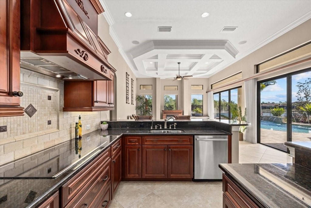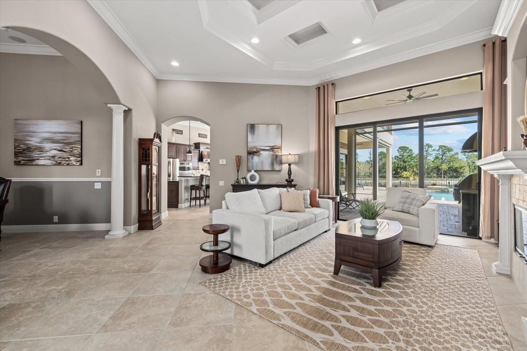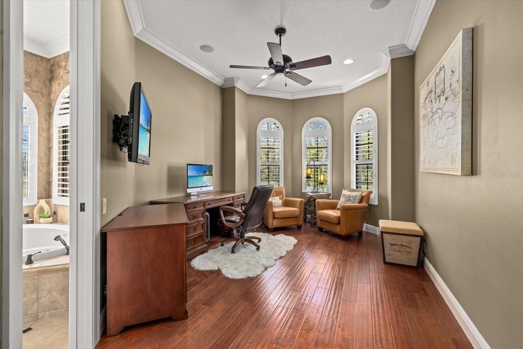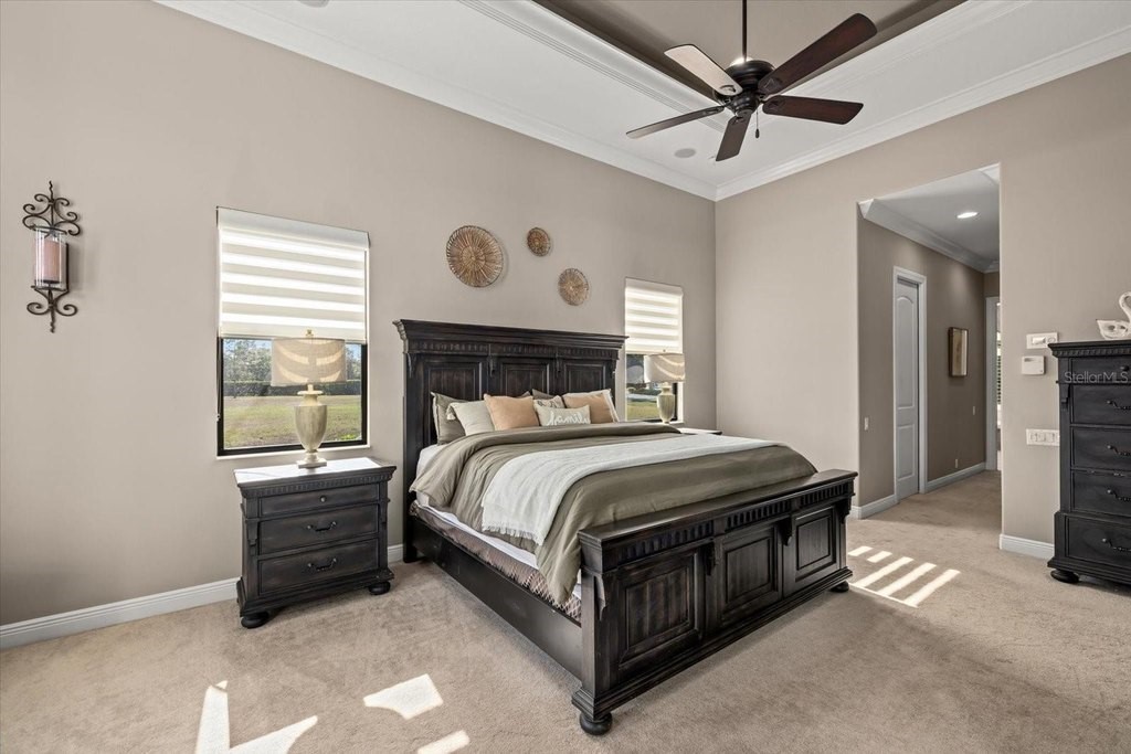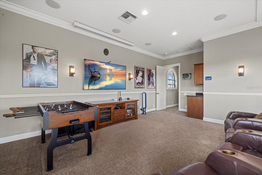Welcome to one of the most exclusive, custom-built homes in Gran Paradiso. Situated within the Grandezza enclave and perfectly positioned on a premium corner waterfront lot with PRIVATE preserve and water views, this exceptional Gran Palazzo II model offers 104 feet of rear water frontage. Custom built by the highly sought after luxury builder, Sam Rogers, this residence is over 4,000 sq. ft. of refined living space designed for the most discerning buyer. Enjoy peace of mind for years to come with HURRICANE IMPACT WINDOWS and DOORS. From the moment you enter, the home impresses with a grand formal living room, soaring 12-foot ceilings, 8-foot interior doors, and a wall of glass that frames breathtaking views of the custom heated saltwater pool and spa. Every detail in this masterpiece reflects uncompromising quality, with EVERY IMAGINABLE UPGRADE throughout. From structural improvements to refined finishes, the sellers INVESTED HEAVILY to represent the pinnacle of quality. A full list of upgrades is available upon request. This 4-bed, 4-bath residence includes an office/den, a fully enclosed upstairs bonus room with a full bathroom, and an added rear balcony, ideal for the state-of-the-art home theater or a private guest suite. The primary suite is a true sanctuary, boasting tray ceilings up to 13 feet, hand-crafted drapes, a spa-inspired bath with Jacuzzi tub, multi-jet shower with handheld features, built-in speakers, and a wall-mounted TV. Custom wood closet systems enhance every bedroom. Entertain your guests in style with a 7.1 surround sound theater room, 12 audio zones throughout the home, and a whole-house entertainment system extending indoors and out. The custom chef's kitchen is both stunning and functional, featuring GE Profile Advantium appliances, dual sinks with disposals, soft-close cabinetry, reverse osmosis water filtration, and a striking 8x10 aquarium-style glass window. Some of the standout features include three premium Lennox Signature Series A/C systems with LED (2020), 400-amp electrical service, hurricane-impact windows and doors, "CoolWall" exterior paint, radiant barrier roof sheathing, hybrid electric water heater, whole-house water softener, and central vacuum system. Seamless indoor-outdoor living continues to the expansive lanai, where a custom outdoor kitchen with proper roof venting, marine-grade cabinetry, propane fueled tiki torches that border the entire fence, outdoor speakers and an oversized heated saltwater pool/spa create the ultimate entertaining space. Located within the resort-style, gated community of Gran Paradiso, residents enjoy world class amenities and serene walking trails that span over 1,000 acres. The HOA fee covers a 24-hour guarded gate, resort-style amenities, high speed fiber optic cable, internet, and landscaping; which are all professionally managed on-site. Located just outside the gates of Gran Paradiso, Downtown Wellen Park offers a vibrant lifestyle featuring an array of curated restaurants, rooftop lounges, weekly outdoor entertainment, live music, kayak launches, walking trails, and easy access to the award-winning Gulf beaches. 2 miles to State College of Florida and the new Wellen Park High School opening in August 2026 makes this the perfect location. This is not just a home, it is a statement of luxury, craftsmanship, and exclusivity. A rare opportunity to own THE crown jewel of Gran Paradiso. All irrigation issues in Gran Paradiso have been resolved and restored.